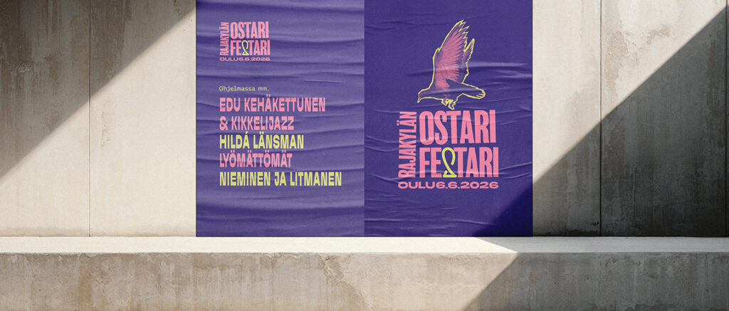 The sister event of Höyhtyä OstariFestari – Rajakylä OstariFestari will be held on 6 June 2026 in Rajakylä, Oulu. I produced the visual identity for the event and prepared the marketing and communication materials. These materials will be used on socialmedia, the event’s website, in the urban environment, and during the event itself. The visual identity preserves the design language and stylistic continuity of Höyhtyä OstariFestari, as the festival has established brand recognition.